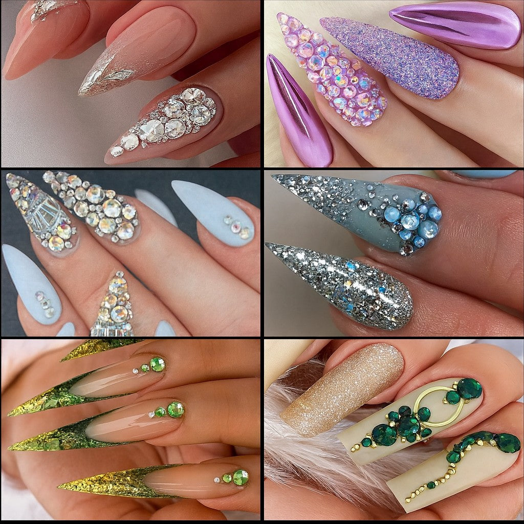 Sprankelende rhinestones: Verkrijgbaar in diverse maten en schitterende kleuren, perfect om subtiele accenten of opvallende, glamoureuze nailart te creëren.