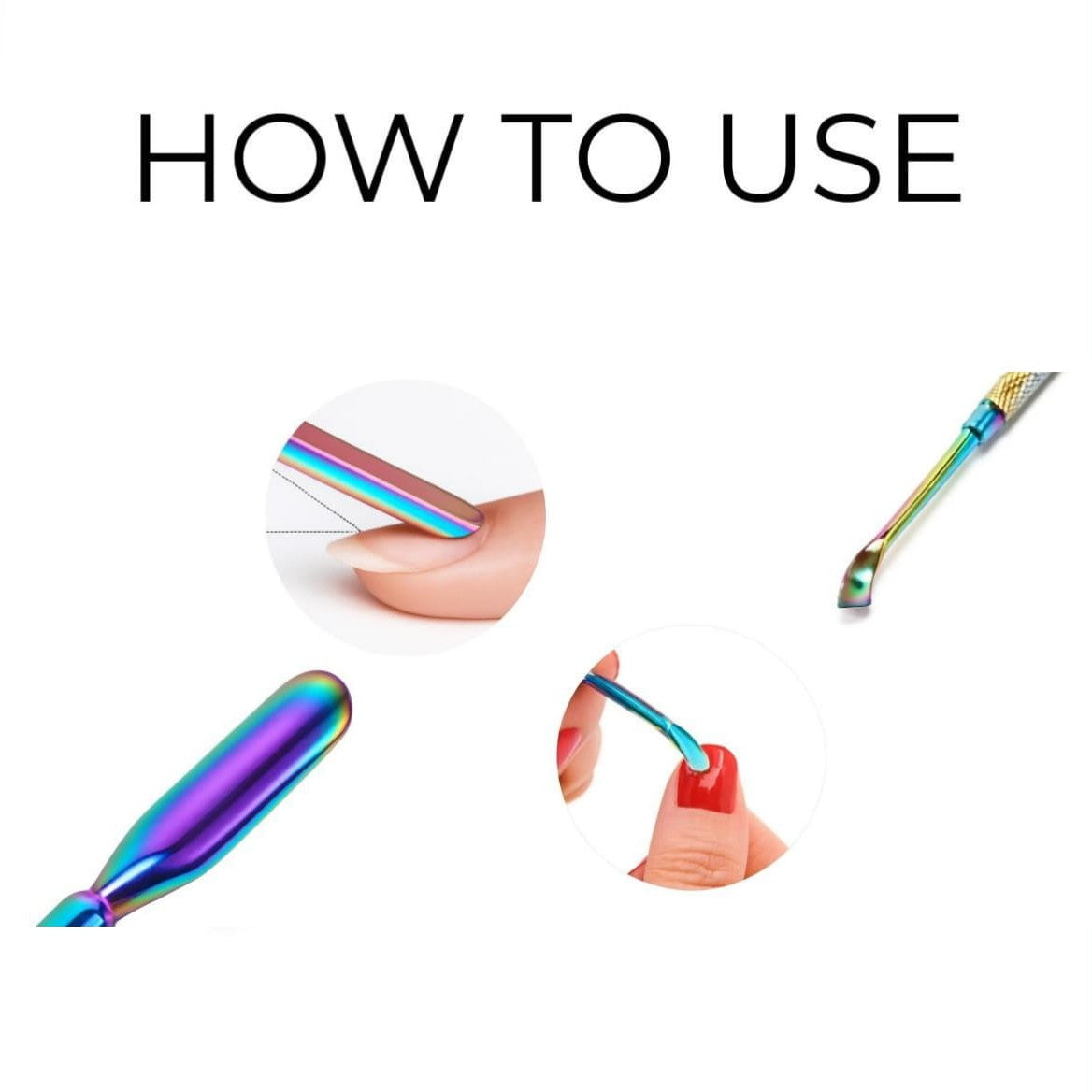 1x Nagelriemduwer: Deze nagelriemduwer is perfect voor het terugduwen van nagelriemen en het reinigen van de nagelranden. Het dubbele uiteinde en het antislip handvat zorgen voor precisie en controle bij elke manicure.
