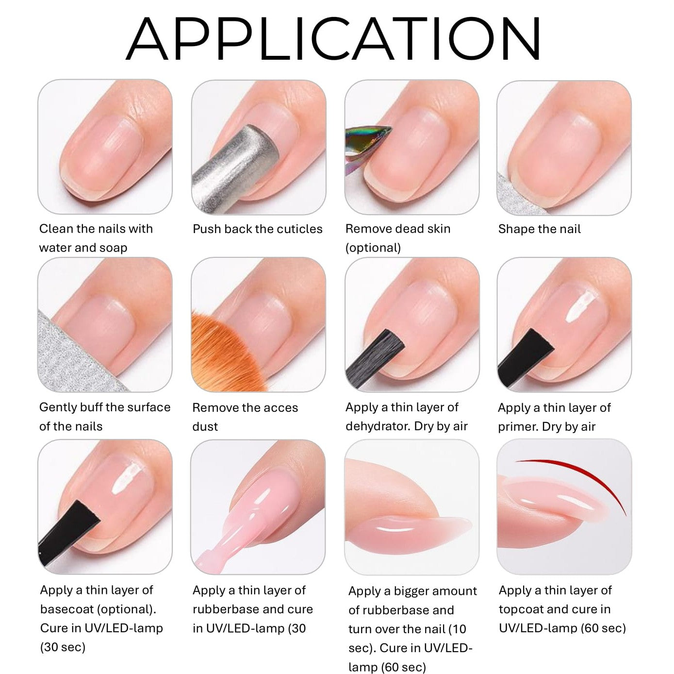 - Langdurige hechting: De rubberbase is geformuleerd voor langdurige hechting, waardoor het langer mooi blijft zitten en de nagelbescherming wordt gemaximaliseerd.