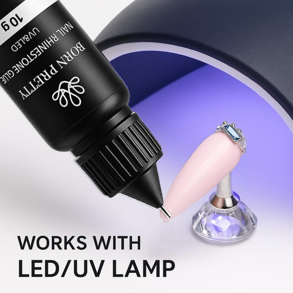Rhinestones lijm: Sterke lijm voor een langdurige hechting van je rhinestones – perfect voor de feestdagen. De rhinestonelijm hard uit onder UV/LED-lamp.