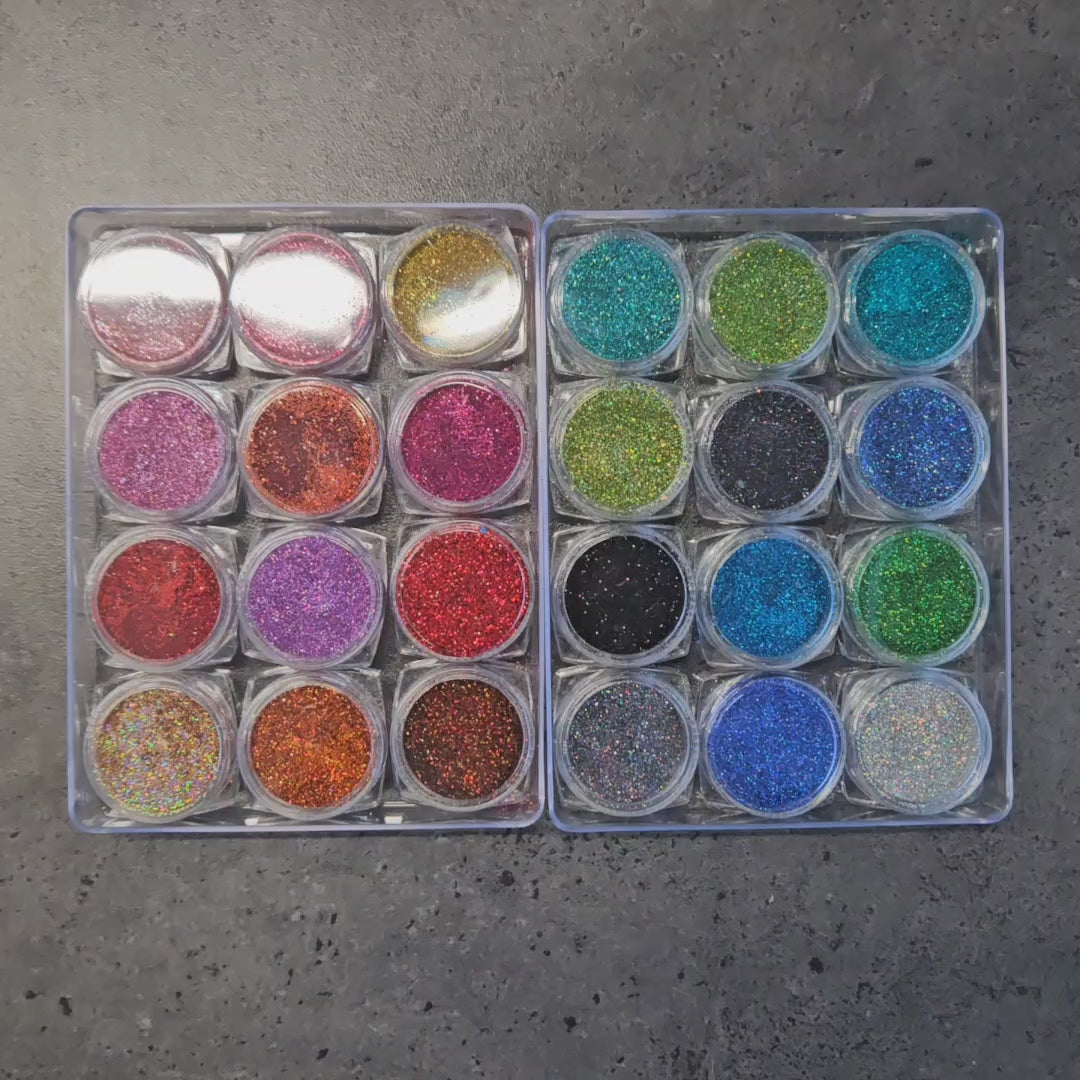 - Herbruikbare potjes: Elke kleur wordt geleverd in een herbruikbaar potje met een handige schroefdop, waardoor je de glitter veilig en netjes kunt bewaren voor toekomstige projecten.