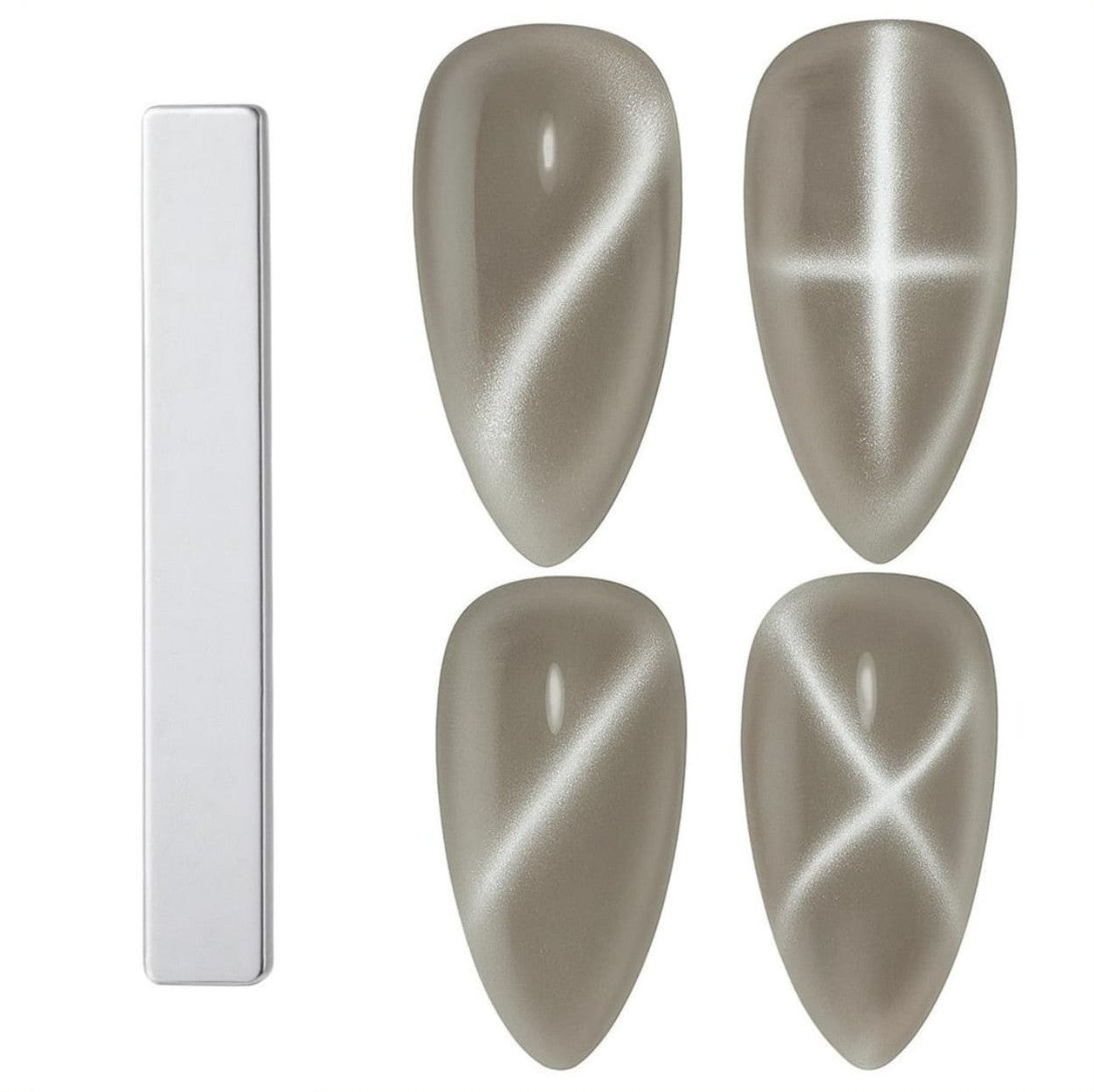 - Cat eye effect: Wanneer je een cat eye magneet gebruikt in combinatie met cat eye gellak, kun je een aantrekkelijk cat eye effect creëren. Dit effect lijkt op het oog van een kat en bestaat uit een streepachtige, bewegende glinstering die vanuit verschillende hoeken van het licht wordt weergegeven.