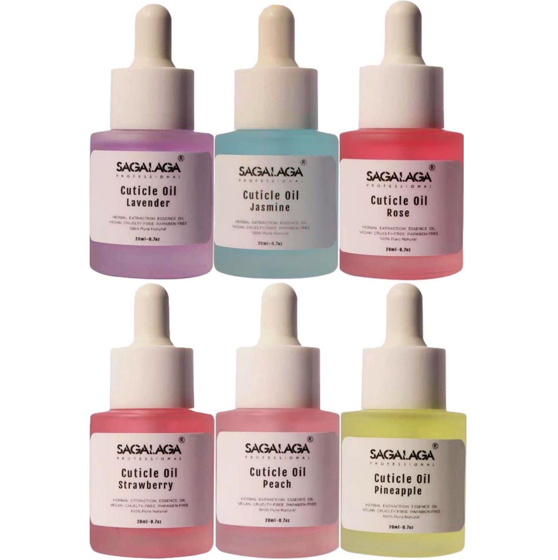 - 6x Nagelolie: De handige glazen 20 ml fles is uitgerust met een applicator waarmee je de nagelolie nauwkeurig kunt aanbrengen. Het is snel absorberend en laat geen vettig residu achter. Deze set bestaat uit de geuren aardbei, ananas, perzik, lavendel, roos en jasmijn.
